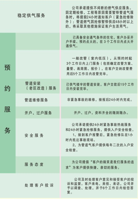 衡陽市天然氣有限責(zé)任公司社會(huì)服務(wù)承諾
